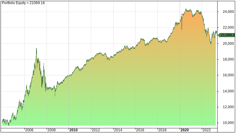 We backtested our Vanguard Ultimate Diversified Portfolio using a “buy and hold” strategy and rebalanced at the beginning of each year. We used the ETFs discussed below and the appropriate weights in the table above for backtesting. The backtesting interval is from 2007 to 2023. All quotes are dividend-adjusted.