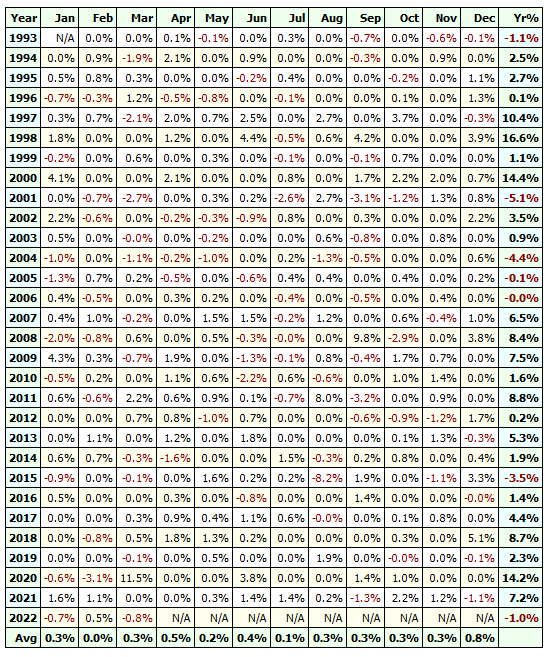 The average gain is 0.25%, the win rate is 59%, and the winners are 15% bigger than the average loser. If we avoid Thursdays the average return increases to 0.33.