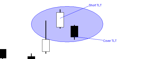 - If both 1 and 2 are true, go long SPY at the close and sell short TLT at the close.