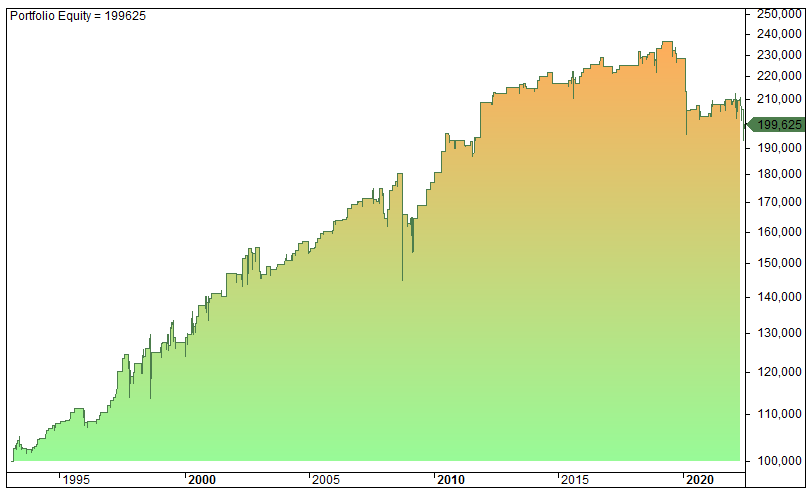 This was one of the first backtest we did on the website. We traded the strategy ourselves, but we abandoned the strategy a couple of years later because we found something that worked better.