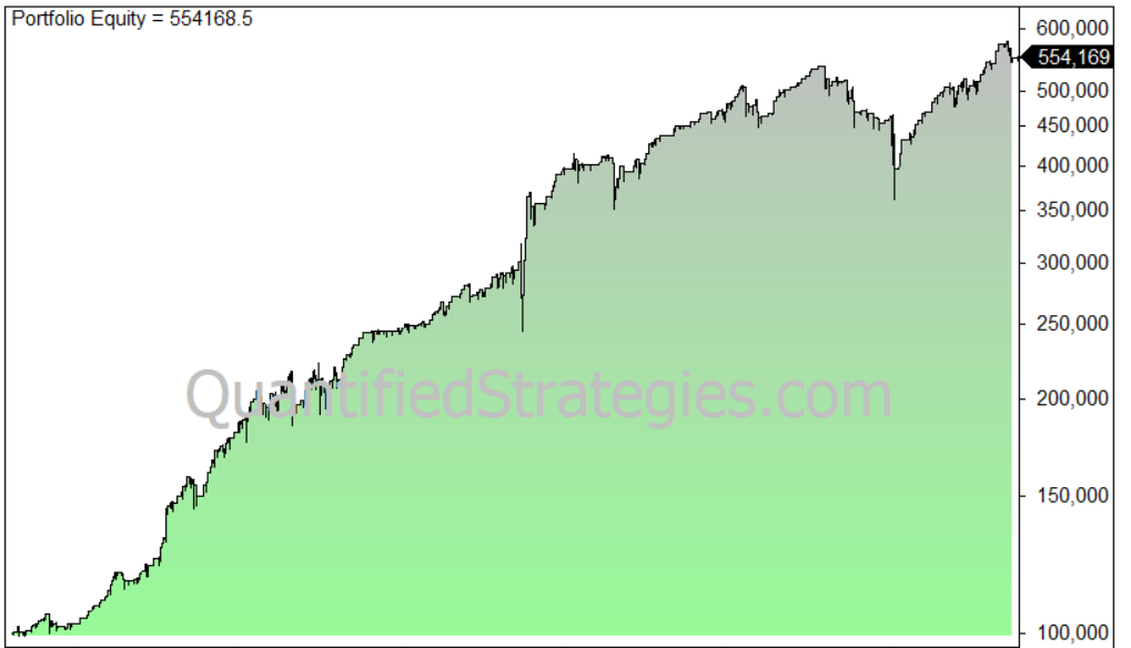 To show you why, we backtested a trading strategy using two different datasets: on dataset not including reinvested dividends and one including reinvested dividends. The difference is huge: the first dataset ended at 554 000 dollars, while the the dataset with reinvested dividends ended at 668 000.