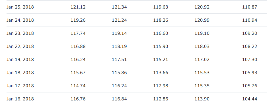 The table above is for Advance Auto Parts, Inc. (AAP). On the 11th of January it paid a dividend, the two last columns is without and with reinvested dividends (the last column). The latter column reflcts, over time, the reinvested dividends.