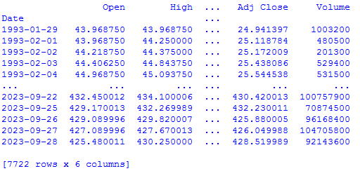 We now have the daily open, high, low, close, adjusted close and volume values for the SPY since 1993!