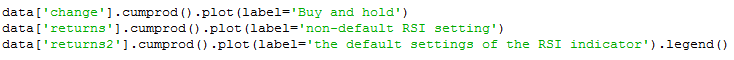 The trading rules of the strategy are quite simple. For RSI with non-default settings: