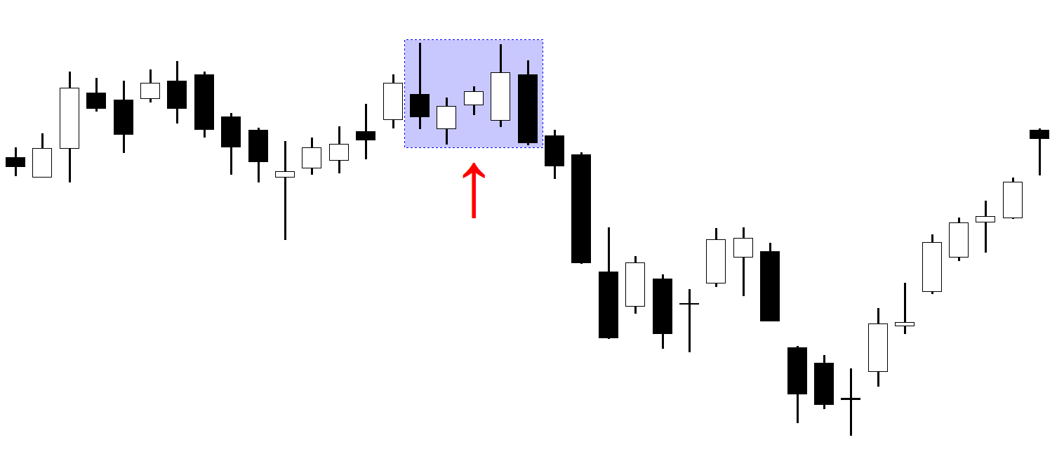 • The next three candlesticks should be bullish, with short bodies and small upward wicks. This suggests some buying pressure in the market, but it is not strong enough to overcome the selling pressure from the first candlestick.
