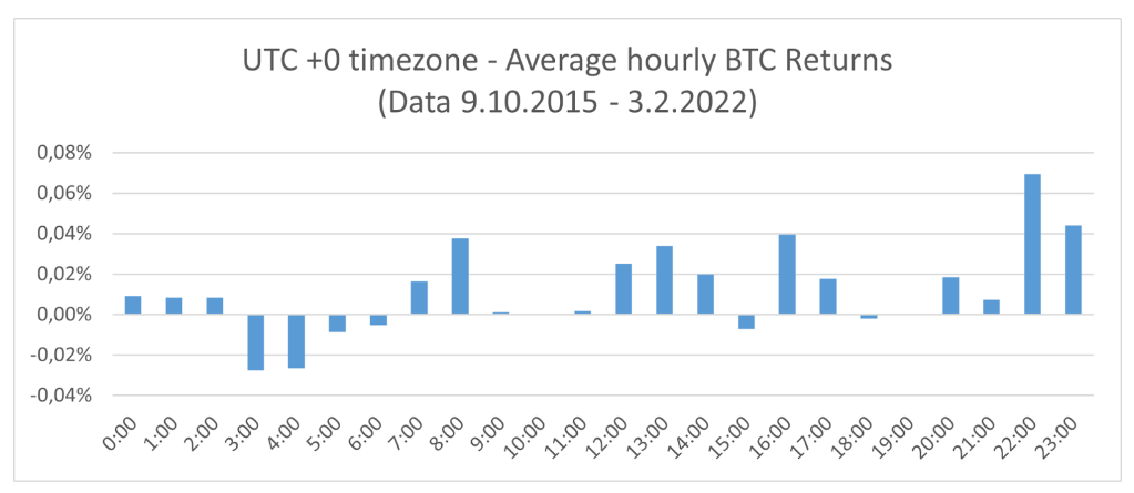 For example, here are the returns of bitcoin per hour of the day since November 2015: