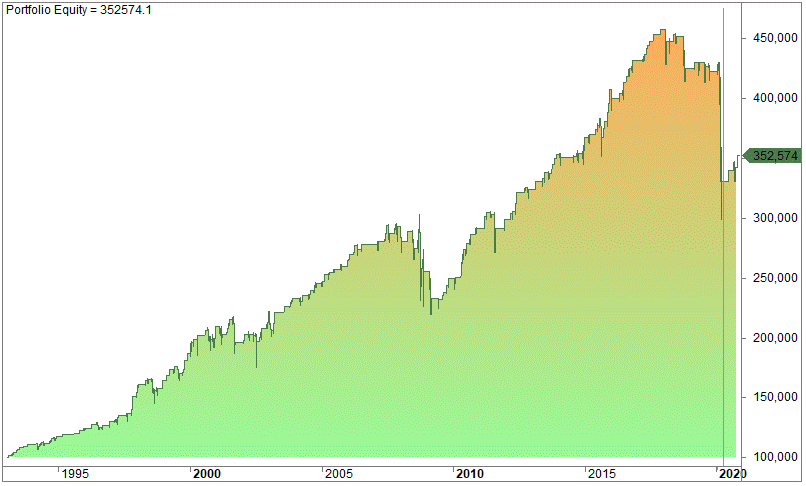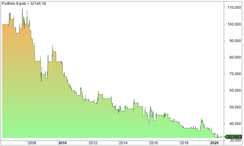 As we can see, the performance has been reasonably well, but it failed to beat the “buy and hold” since 1993 by a wide margin. Since 2018 it has been a losing strategy.