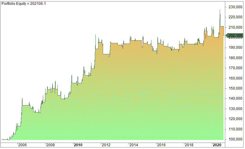 We give you the Amibroker code (and for Tradestation if you require) for the strategies we made above on demand. Read more here: