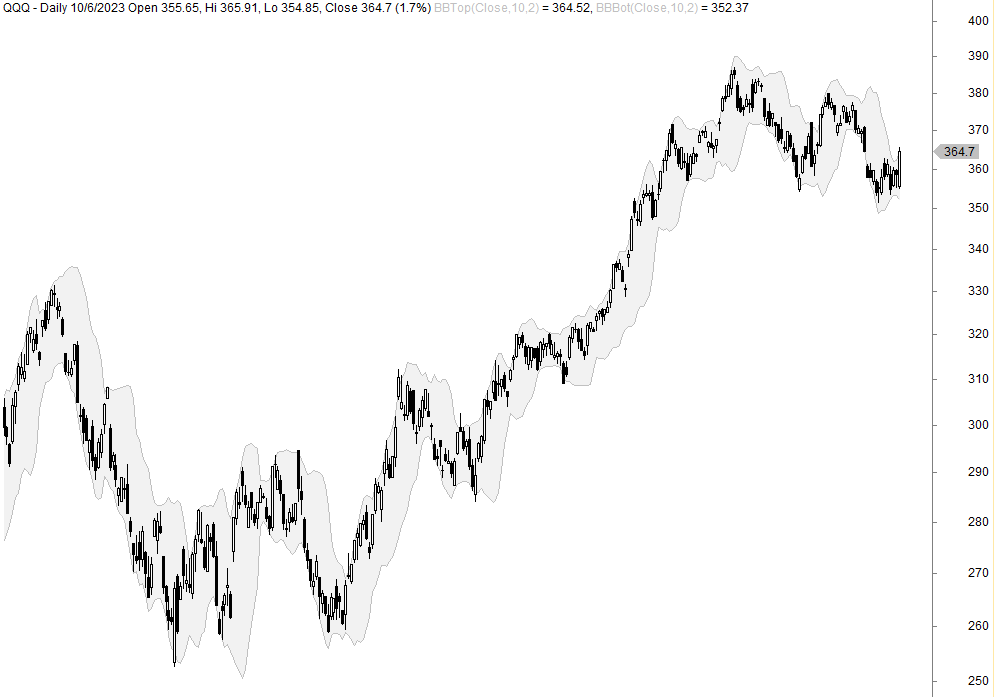 - We make a 10-day Bollinger Band 1.5 standard deviations away from the mean (lower band).
