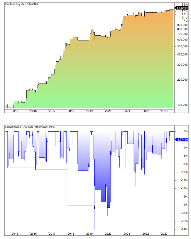 Quantified Strategies (SIA Lofjord) is not an investment advisor. The content and information provided are educational and should not be treated as financial advisory services or investment advice. Trading and investment in securities involve substantial risk of loss and is not recommended for anyone that is not a trained trader or investor – it shall be conducted at your own risk. It is recommended that you never risk more than you are willing to lose. Leverage can lead to substantial losses. Any use of leverage, margin, or shorting is at your discretion. Quantified Strategies (SIA Lofjord) is not responsible for any losses that occur as a result of its content and information. Always use a demo account for many months before you do live trading. Trading requires hard and systematic work – there is no easy money, and markets change all the time. And remember: always trade smaller position sizes than you’d like to.