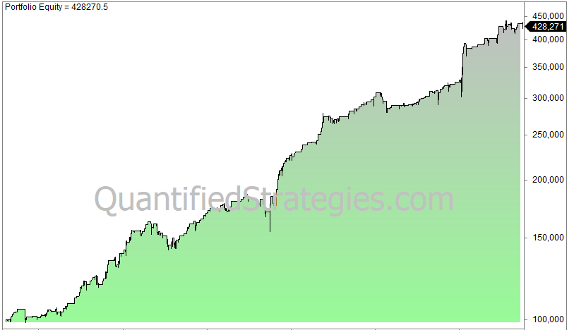 These trading rules made the following equity curve for S&P 500 (SPY) from inception until today (Amibroker):