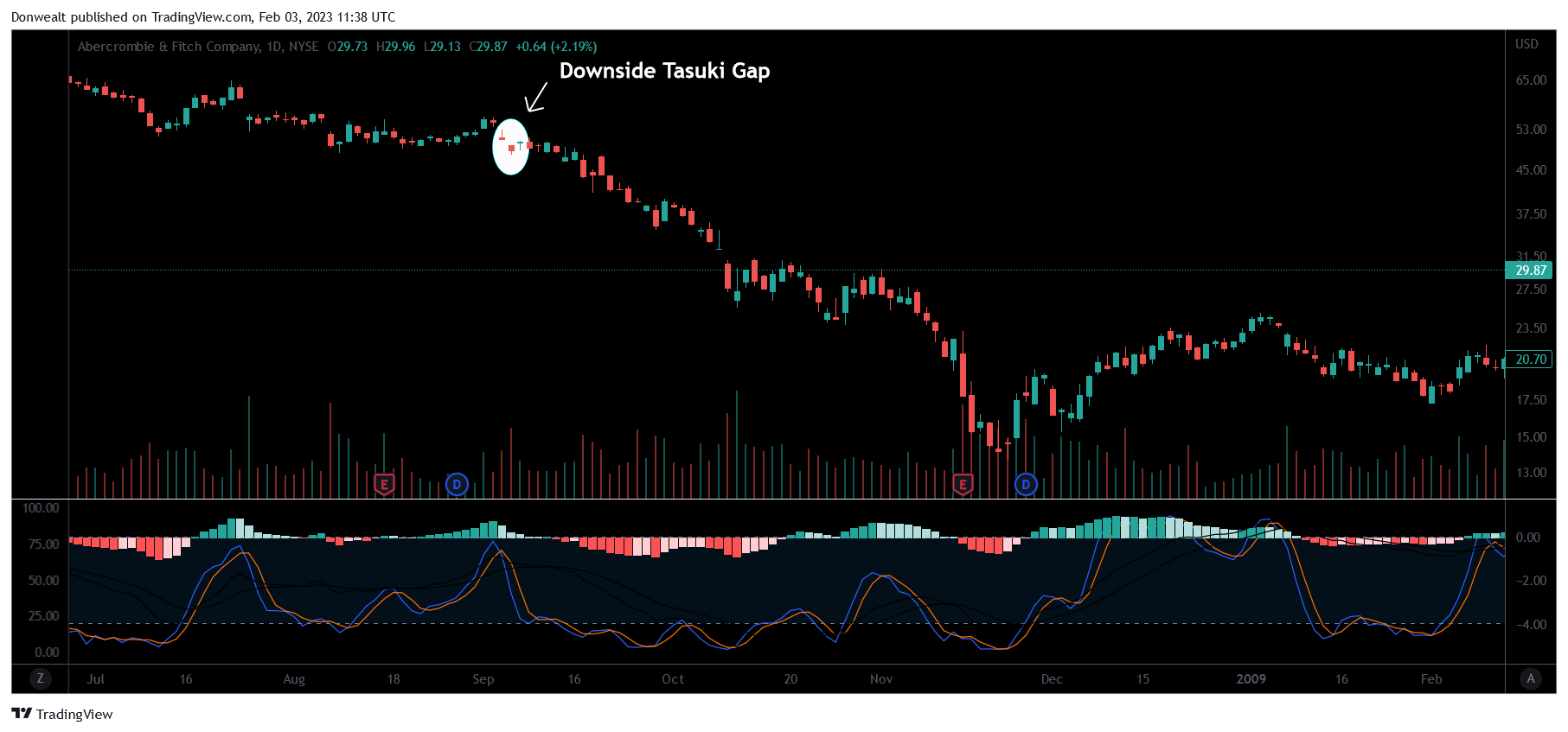 In this post, we take a look at the Downside Tasuki Gap candlestick pattern.
