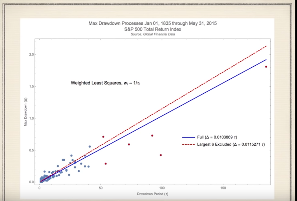 With a linear regression model, Dr. Frey could demonstrate that the size of the drawdowns is proportional to the duration of the drawdowns.