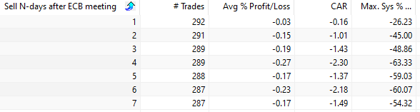 ECB meetings trading strategy backtest – sell N-days after the ECB meeting