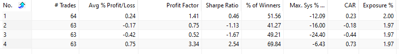The results turn negative: -0.11% per trade and a win rate 52%.