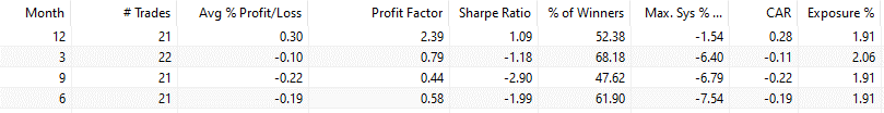 If we look at the performance for each separate month, we get these results: