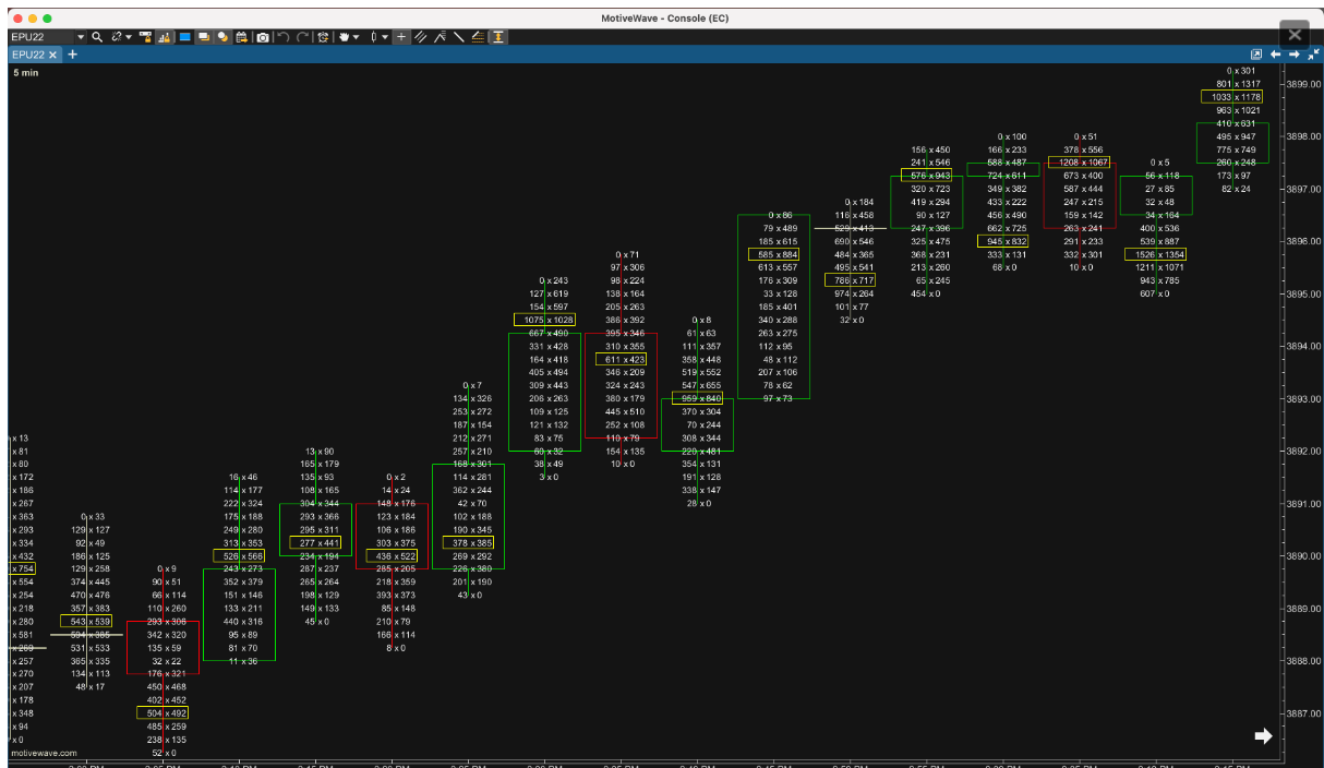 The footprint chart represents the buying and selling activity at each price level, providing a comprehensive view of market dynamics. Traders use footprint charts to identify trading opportunities and gauge market sentiment.