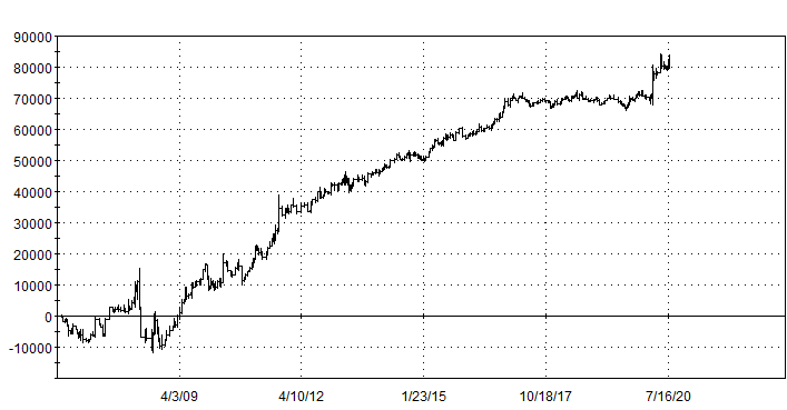 Hypothetical or simulated performance results have certain limitations. Unlike an actual performance record, simulated results do not represent actual trading. Commissions and slippage are not included, and most trading signals are triggered at the close. Also, since the trades have not been executed, the results may have under or overcompensated for the impact, if any, of certain market factors, such as lack of liquidity. Simulated trading programs, in general, are also subject to the fact that they are designed with the benefit of hindsight. No representations are made that any account will or is likely to achieve profit or losses similar to those shown from these futures trading strategies.