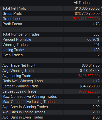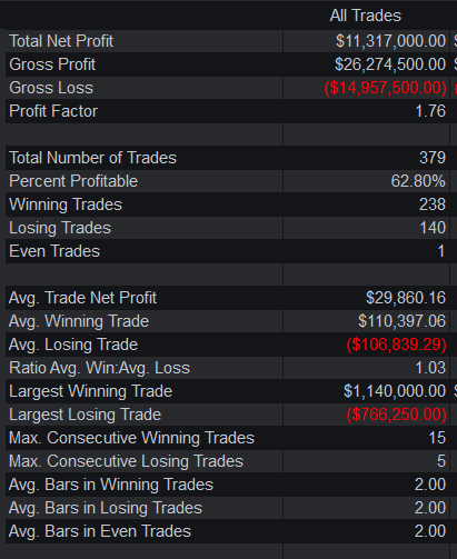 It is impossible to say the most profitable futures trading strategy, as different strategies work best in different markets. The most important thing is to find out whether a strategy has a verifiable statistical trading edge with positive expectancy in the market you want to trade. The only way to verify this is to backtest the strategy to know how it performs on past price data.