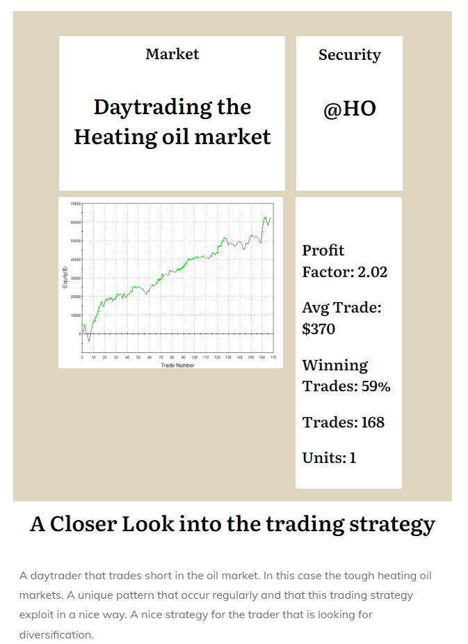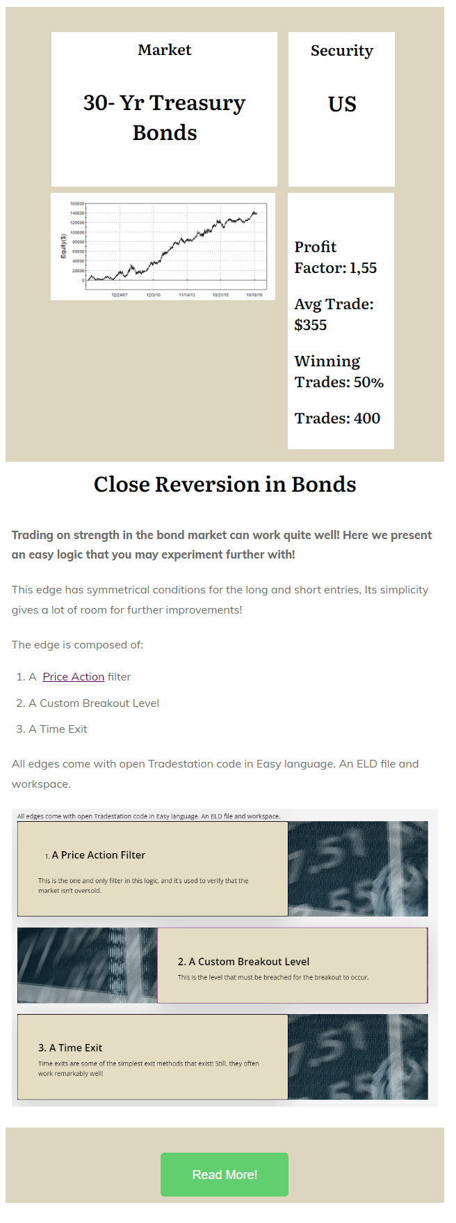 Below we present a mixed bag of potential futures trading strategies. About 95% of the backtests on this website are tested on ETFs. It could be SPY, XLP, USO, TLT, for example.