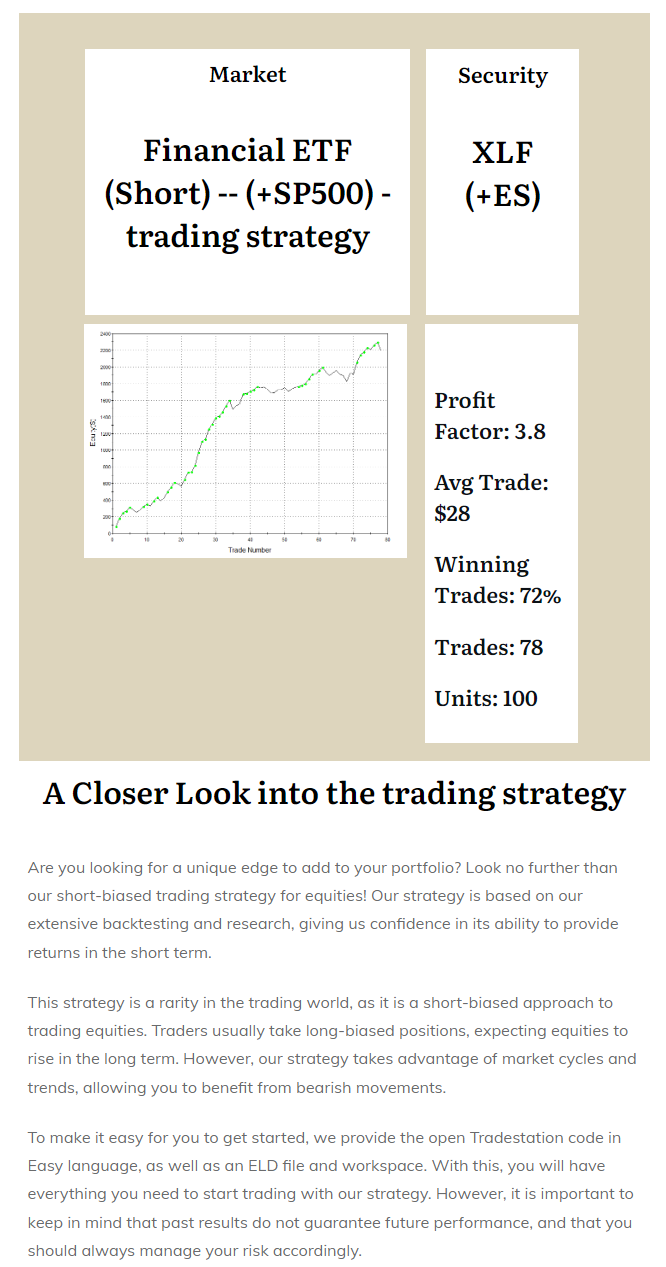 Financial ETF (Short) — (+SP500) – Trading strategy