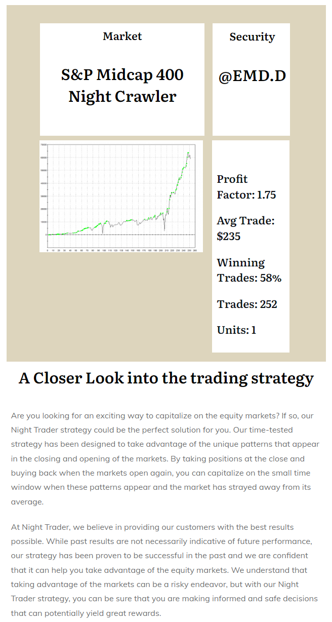 Night Crawler S&P Midcap 400 | Backtest since 2003 (EMD.D)