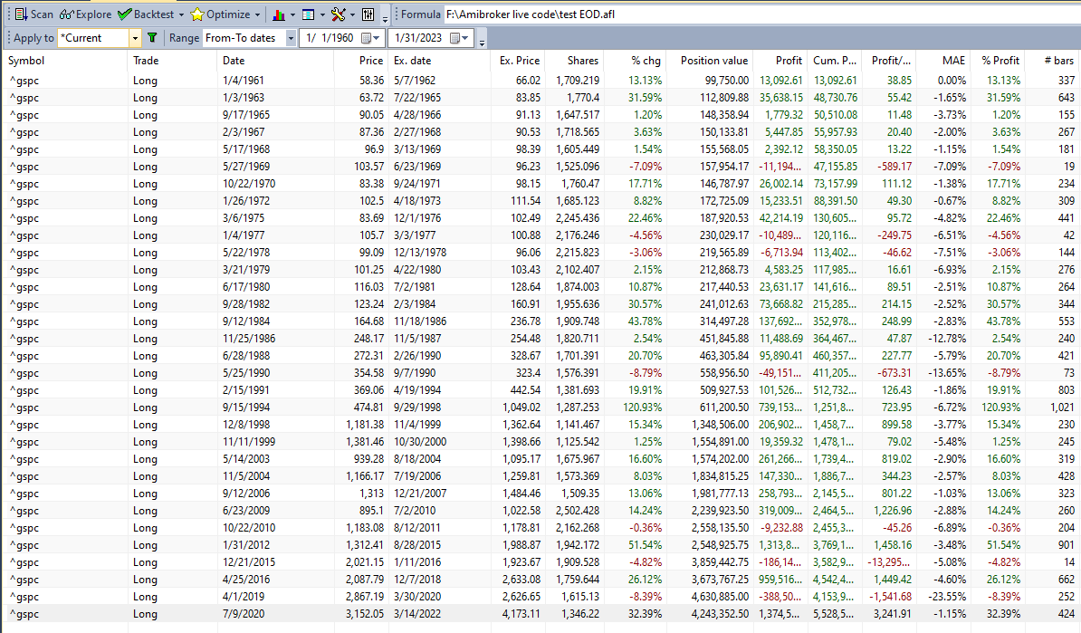We backtested the strategy on the S&P 500 since 1960. We used the same trading rules as described above.
