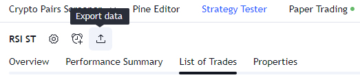 In the Performance Summary tab, we will find statistics about our strategy, such as Sharpe Ratio, Average R:R, and much more. In the List of Trades, we can see all the trades performed by the backtest and even export all this data in CSV format to analyze it separately.