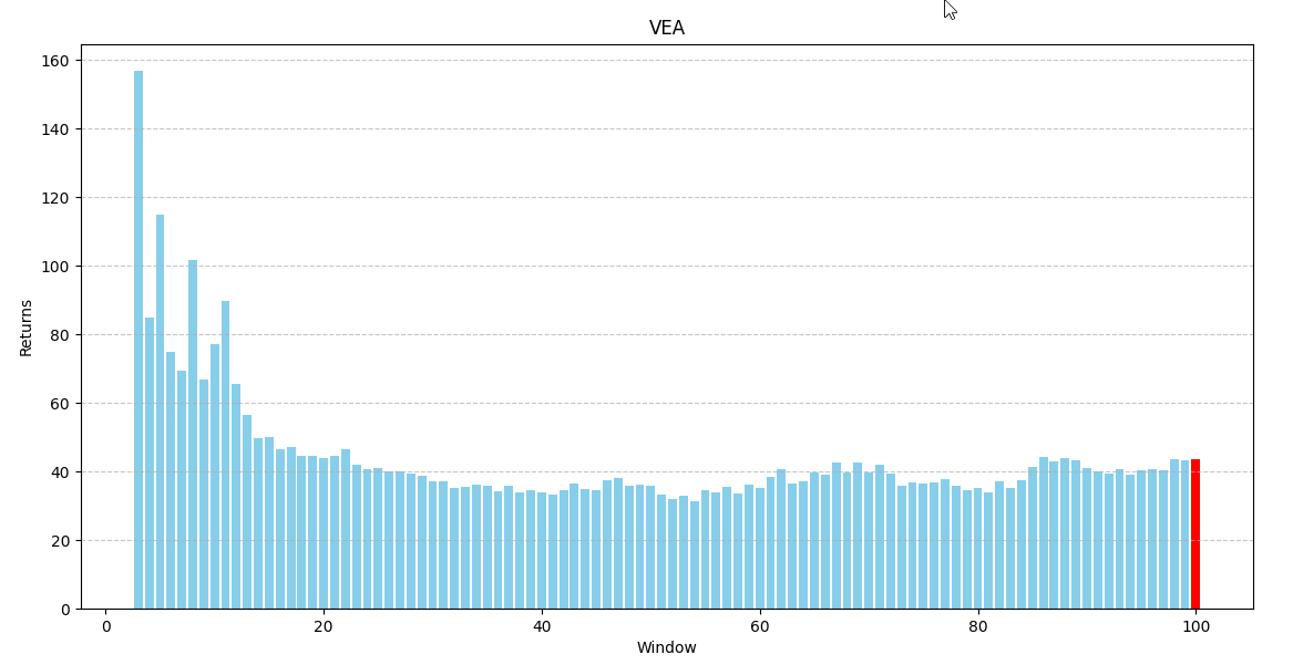 This disparity suggests that the RSI(3) strategy may overfit the data. Similarly, the RSI(5) and RSI(8) strategies appear to overfit the data. The underlying reason lies in the concept of robustness. Two similar algorithms should produce comparable results. Therefore, the first ten strategies should exhibit similar return values; their returns should be in the range of 65% to 85%.