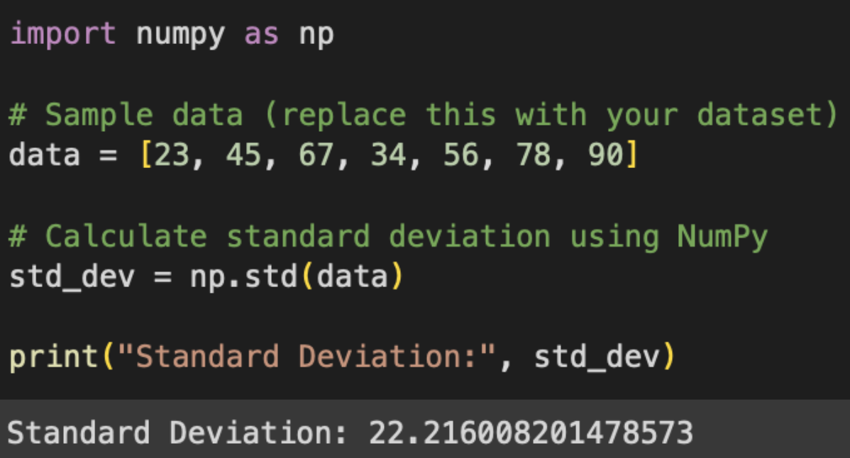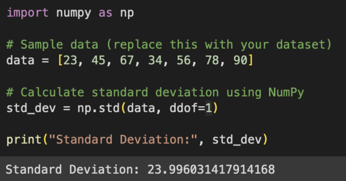 The standard deviation can also be calculated manually in Python. Here is the code:
