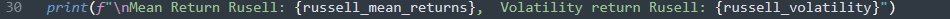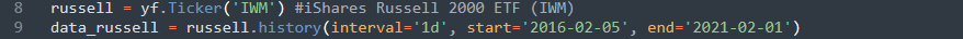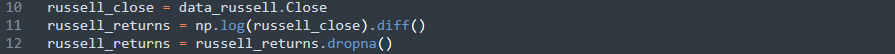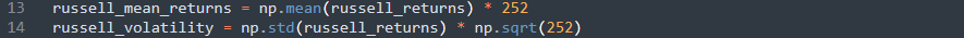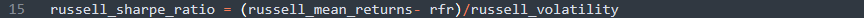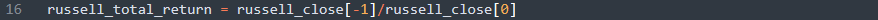 The total return is estimated like this: where (russell_close[-1]) and (russell_close[-1]) are the first and last element from the closing price: