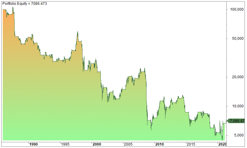 If we were only invested during the bad months, ie. from June until the end of November, the equity chart looks like this: