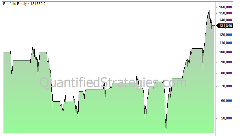 The first real drawdown happened in 1974, and the strategy never really recovered after that. The decade-long bull market of 2010-2020 made the strategy recover somewhat.