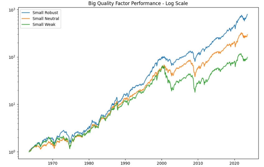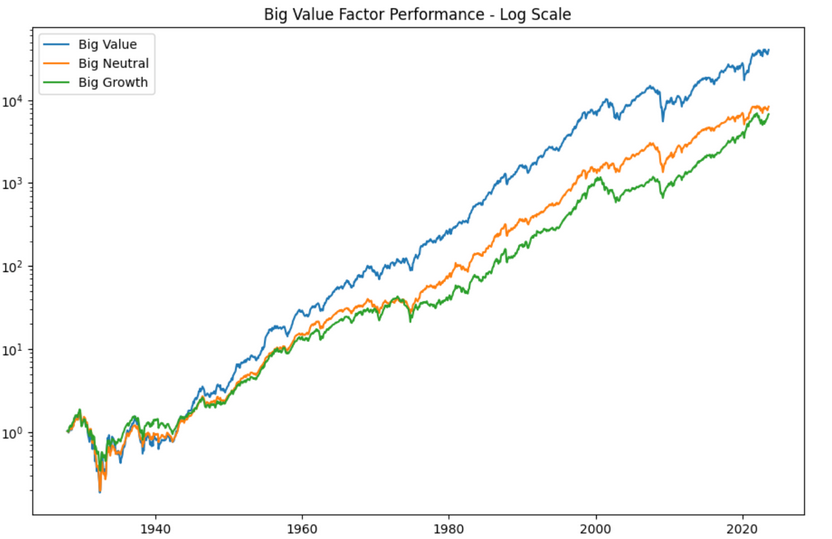 How did this factor perform? Here are the compounded returns (inside the chart it says erroneously “small” but it should be “large/big”):