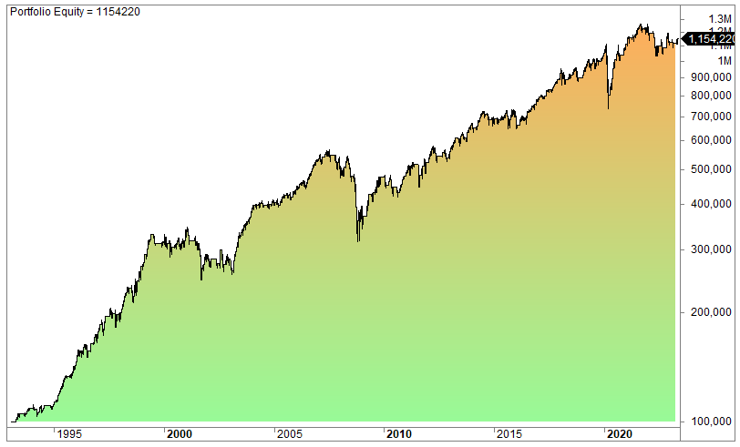 We get the following equity curve when we backtest S&P 500 (SPY):
