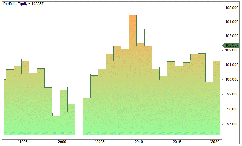 In SPY the Amibroker equity curve looks like this: