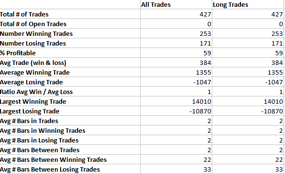 The trading strategy is an overnight trading strategy: we enter at the close and exit at the close after 24 hours. The strategy is futures trading strategy #6 on our list of futures strategies for sale. It’s behind a paywall and thus we won’t reveal its trading rules, obviously.