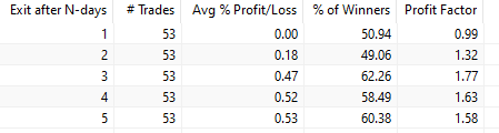 - We sell after N trading days.