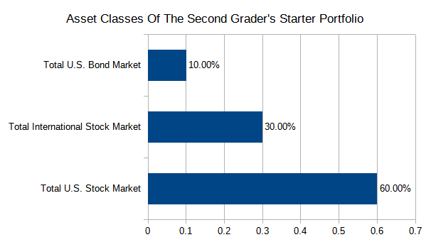The Second Grader’s Starter Portfolio consists of the following asset classes with their respective total weights: