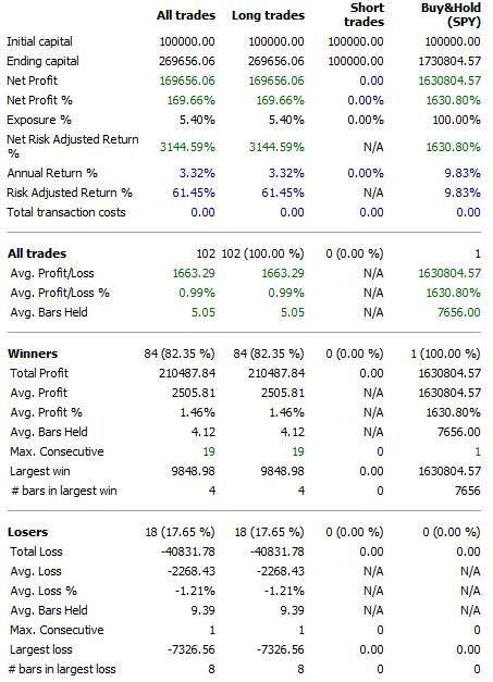 How does the professional trading strategy perform? Pretty good on the S&P 500 (SPY):