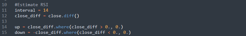 - Next the variable up (representing gain) will be the values from close_diff greater than zero,