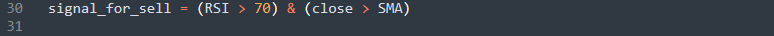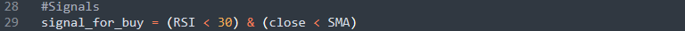 The signal generates the entry point – where we buy. To make this we need to follow the strategy rules we made further up in the article, which is “buy when the 14-day RSI is lower than 30 and the closing price is greater than the 5-day SMA: