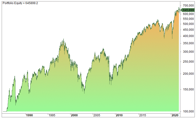 The CAGR is 11% and the biggest drawdown is 53% in 2008/09. Mind you, the return is 1% higher than holding the S&P 500 over the same period.
