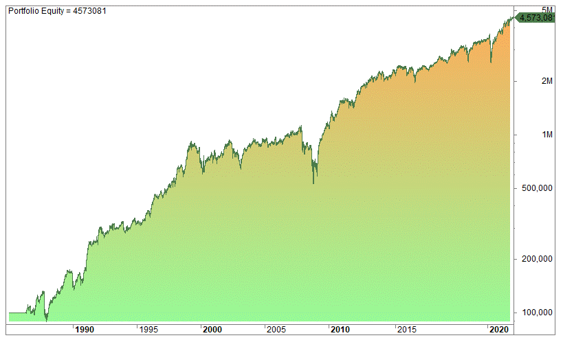 The CAGR is 11% and the biggest drawdown is 53% in 2008/09. Mind you, the return is 1% higher than holding the S&P 500 over the same period.