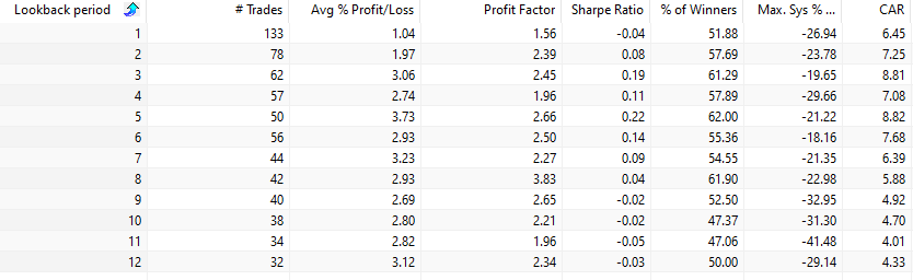 We test a strategy that each month picks one of these three ETFs with the highest total return over a certain lookback period: