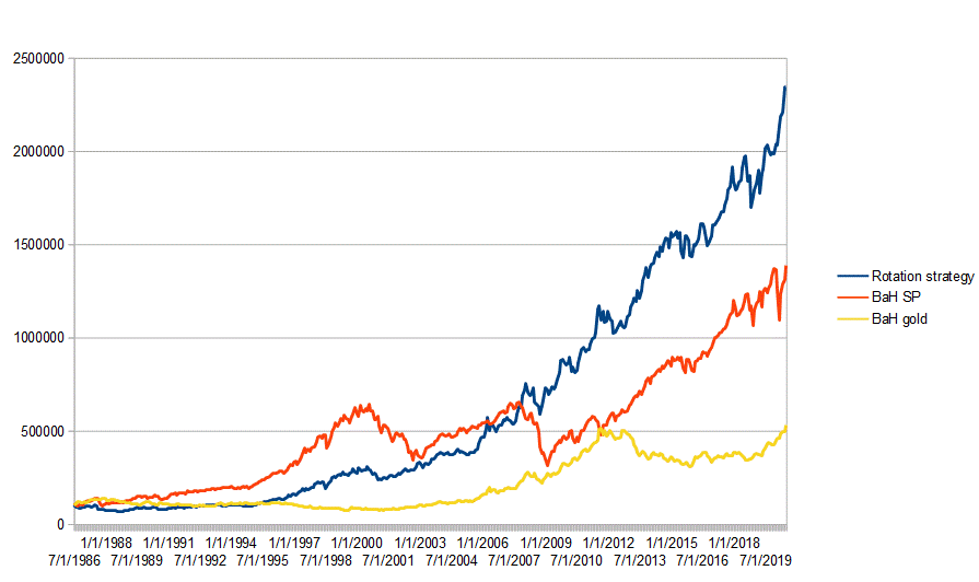 – Why use a rotation strategy between the S&P 500 and gold?