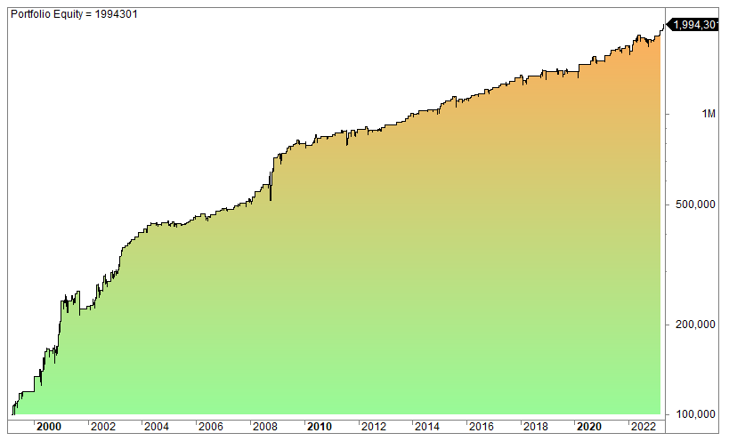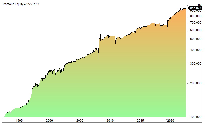 The average gain per trade is 0.98%, and the CAGR is 7.5% while only being invested 41% of the time, thus having a risk-adjusted return of almost 18%. Again, we believe these numbers are pretty good for such a simple strategy!