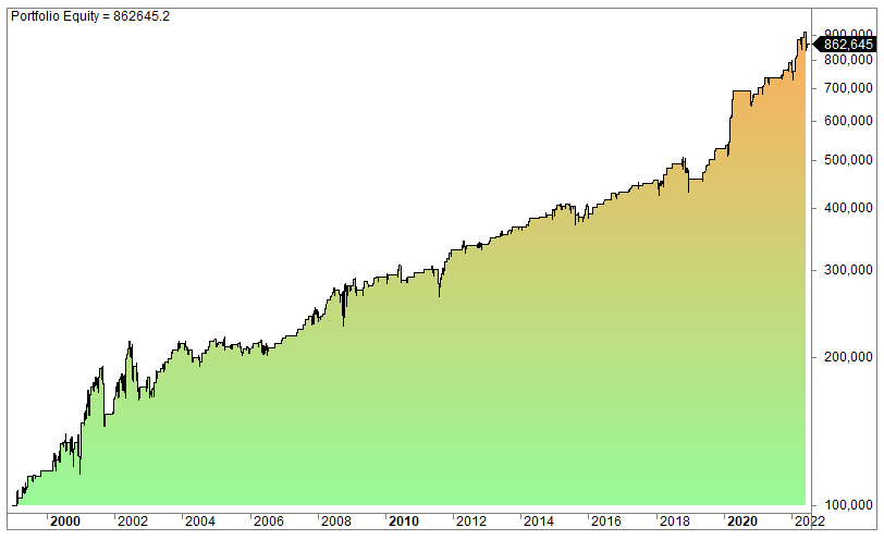 Commissions and slippage are not included in the backtests (estimated commissions and slippage).