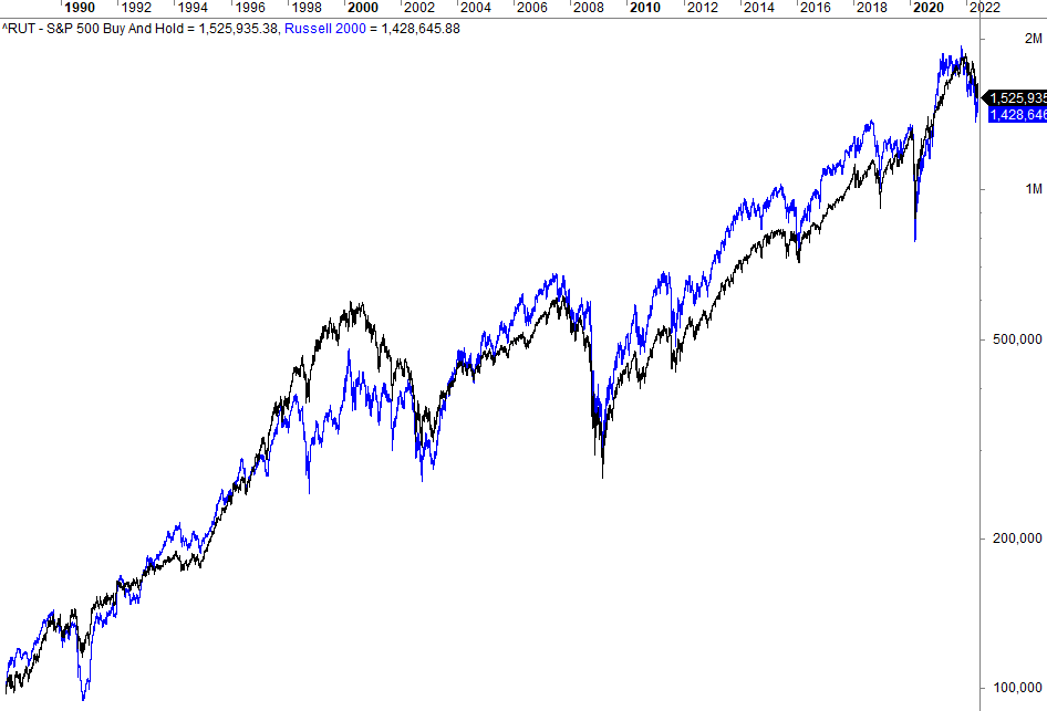 Small caps vs. large caps long-term historical chart