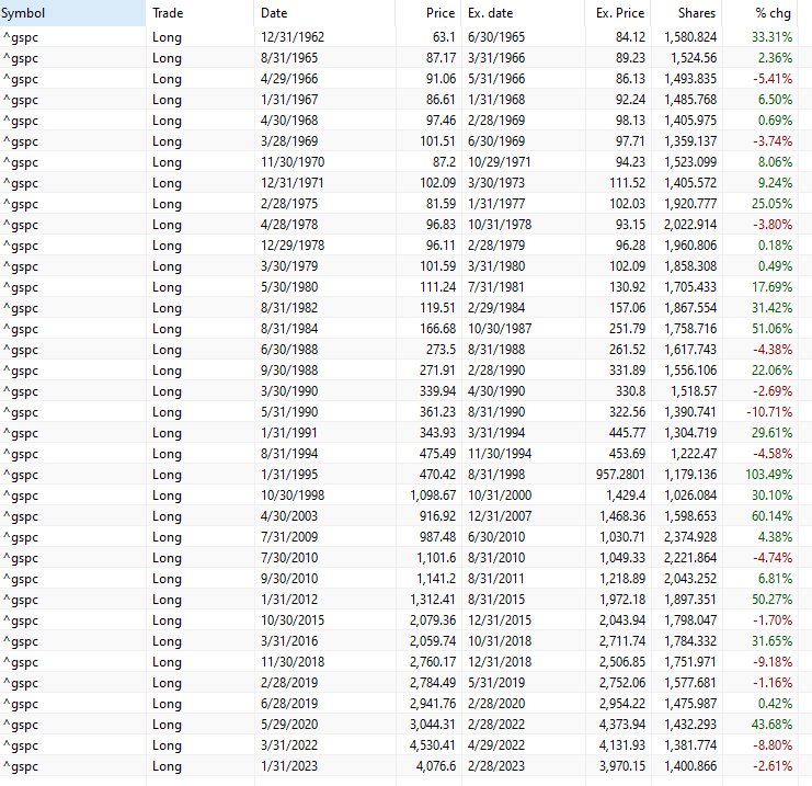 This is the complete trade list since 1960 (36 trades):
